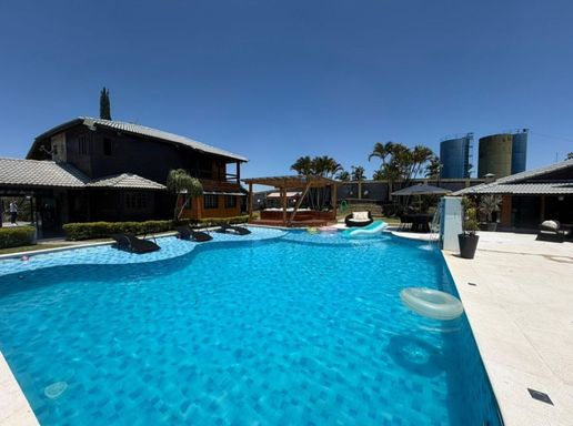 A área de lazer é completa e ideal para momentos especiais. Conta com piscina aquecida, campo de futebol e uma agradável área gourmet com fogão a lenha, perfeita para reunir família e amigos. Em frente à piscina, um telão externo cria uma atmosfera única para assistir filmes e eventos ao ar livre.