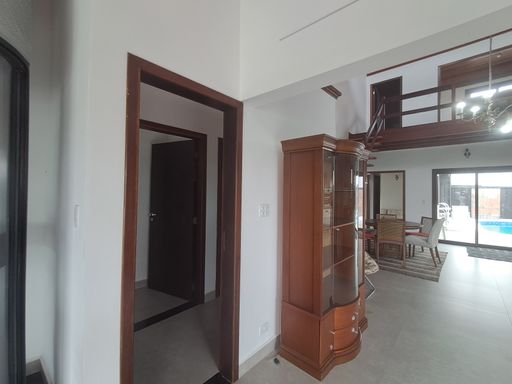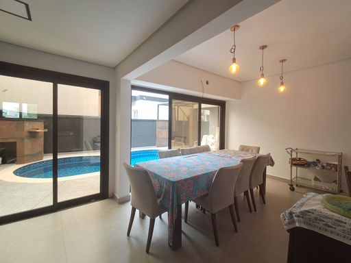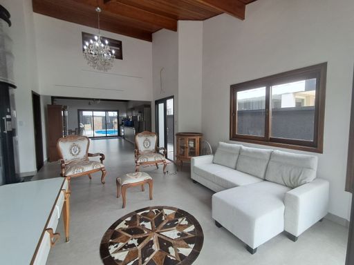 Casa de alto padrão no Condomínio Ecopark, pensada para quem valoriza conforto, sofisticação e integração dos ambientes. Com pé-direito alto e mezanino que emoldura a área social, o imóvel recebe abundante iluminação natural, criando uma atmosfera elegante e acolhedora. Conta com elevador, trazendo praticidade ao dia a dia, além de ambientes amplos e bem distribuídos. A área gourmet é ideal para receber, integrada ao lazer com piscina, perfeita para momentos especiais com família e amigos. Um projeto espaçoso, moderno e funcional, em um dos condomínios mais desejados da região.